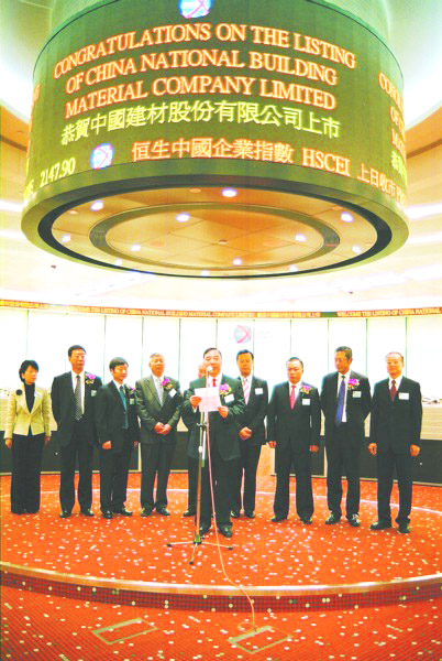 国家发改委、国资委、中国建材协会、中国水泥协会及相关政府部门领导、中国建材董事、监事、高管人员、股东单位代表、国内建材行业代表、金融业代表、证券机构代表、合作单位代表,以及香港社会各界人士代表参加了当天的上市挂牌仪式。