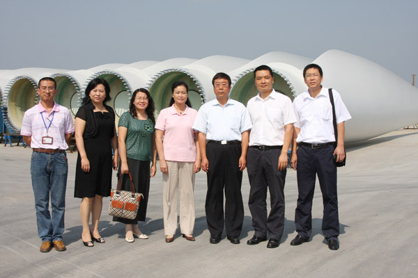 在中复连众总经理乔光辉的陪同下,孙会长一行参观了大浦叶片工业园区,在真空灌注工艺生产线现场,乔总详细介绍了公司目前叶片生产的工艺、成本、效率及公司近三年的产能规划,孙会长详细询问了叶片的技术参数及运行发电的相关问题。在会议室乔总从中复连众的历史沿革、产品种类、技术研发、人才培养等方面详细介绍了公司情况,并就玻璃钢行业和叶片的发展现状与孙会长、姚总一行进行了交流,孙会长对中复连众的快速发展连声称赞,认为中复连众能摆脱旧观念、在玻璃钢这个老行业闯出一片新天地,赋予了这个行业新的生命力;姚总充分肯定了中复连众做大做强叶片的决心和效率,每次来连云港都能看到中复连众在基础建设和产能扩大上进展迅速,勉励中复连众克服一切困难,努力完成中建集团的战略目标,尽快建成亚洲第一的叶片制造基地。