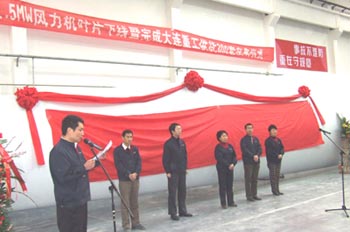 董事长任桂芳在庆典仪式上郑重地宣布中复连众2007年第1000片1.5兆瓦风力发电机叶片的顺利下线,它标志着中复连众成为国内兆瓦级风力发电机叶片制造规模单打冠军。中复连众用了两年半的时间走过了从“0”到“1”,再到“1000”的发展道路,一路上凝聚了从中央到地方各级领导的关注和支持,凝聚了所有中复连众人的智慧和辛劳。12月20日,国务院副总理曾培炎莅临中复连众视察,对中复连众的发展风力发电事业表示赞赏,对中复连众的发展规模和发展速度给予了肯定,鼓励中复连众立足创新,尽快做大做强。2008年,中复连众将在8月前完成三分厂四分厂的基建任务,并新征厂区500亩,瞄准中国新能源装备企业的标准要求,整体规划、分布实施。