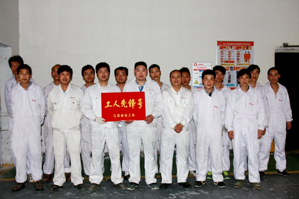 铺层13号线,成立于2008年,位于中复连众大浦厂区,现有员工19人,是中复连众第一个全员通过玻璃钢资格考试的班组,其中3人取得高级玻璃钢资格证、7人取得中级资格。凭着自身的专业技能和出色的工作表现,这支年轻的班组在今年4月份荣获了江苏省“工人先锋号”称号。