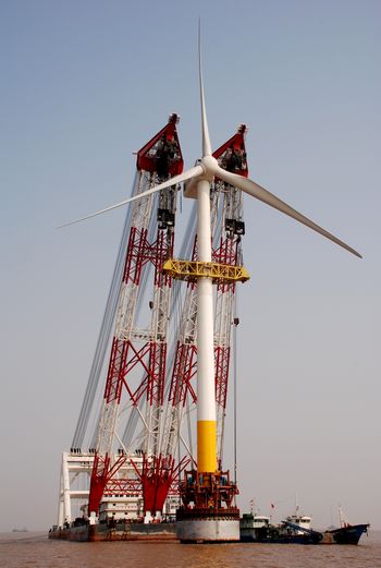 在2010上海世博会进入倒计时之际,东海大桥海上风电安装取得的成功将成为世博园区清洁能源的一大亮点。据业内专家介绍,风机安装完毕后将进行设备调试,并将在世博前期全部并网发电。届时,2010年上海世博会和上海市民可用上来自东海风力发出的清洁能源电力。