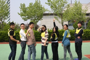 4月30日,集智搜索比赛火热开战,红、黄、蓝三队斗智斗勇,不仅要寻找线索,揪出隐藏在自己队伍中的“特务”,而且还要撕掉其他两队队员的名牌。黄队率先找到本队“特务”,队员刘靓和李琦两位女队员巾帼不让须眉,联手围追红队最后一名男队员,艰难撕下名牌,为黄队赢得荣誉。