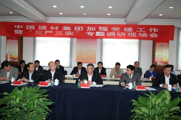 宋志平在讲话中指出,为了学习贯彻中共中央、国务院《关于深化国有企业改革的指导意见》和《关于在深化国有企业改革中坚持党的领导加强党的建设的若干意见》中关于加强党的建设的有关精神,集团党委以现场会的形式进行工作部署,是一种有效的创新举措。这次会议选择在中复连众召开是基于中复连众党建工作有思路、有特色、有亮点、有效果,“两手抓、两促进”成效显著。中复连众党建工作主要体现了四个特点:一是紧密结合实际,创新工作思路,充分发挥党组织独特优势;二是狠抓学习型组织建设,学习创新的氛围浓厚;三是注重文化建设和人文关怀,增进职工群众凝聚力;四是实现了发展经营和党建文化“两手抓、两促进”。根据中央和国资委要求,结合集团实际,就如何进一步加强党建工作,抓好“三严三实”专题教育,他提出六点要求:一是要深化认识,进一步增强从严治党、加强企业党建的责任感和使命感。在党要管党、从严治党方面,国企不能例外,必须落实管党治党主体责任。作为央企的领导干部,要切实履行管党治党的职责,不能忘记自己的党内职务和责任,把坚持党的领导、加强企业党建作为头等大事,各级企业党组织要强化主业主责意识,把纪律和规矩挺在前面,严格落实管党治党主体责任。二是要从严从实抓好“三严三实”专题教育工作,确保质量和效果。要继续按照中央要求,特别是按照习总书记在中央政治局第26次集体学习时的重要讲话精神和要求推进专题教育工作,扎扎实实地做好做到位。通过开展“三严三实”专题教育工作,进一步加强党员干部的作风养成,进一步弘扬集团文化理念,进一步凝聚人心鼓舞士气,进一步推进集团改革发展。三是要明确党组织在公司法人治理结构中的法定地位,充分发挥政治核心作用。要把加强党的领导和完善公司治理统一起来,坚持“双向进入、交叉任职”的领导体制,创新现代企业制度下党组织充分发挥政治核心作用的途径和方式。在企业改革中坚持“四个同步”,实现“四个融合”,保证党组织工作机构健全、党务工作者队伍稳定,党组织和党员作用得到有效发挥。四是要认真落实“两个责任”,切实将反腐倡廉工作落到实处。要牢固树立“不抓党风廉政建设是失职,抓不好党风廉政建设是渎职”的意识,认真落实国资委党委和国资委纪委有关规定。抓好中国建材集团党委《关于落实党风廉政建设主体责任的意见》和《关于落实党风廉政建设监督责任的意见》的贯彻落实。五是要大力践行集团文化,打造“三严三实”“五有八讲”干部队伍。作为联合重组而来的企业,在发展实践中,集团培育发展了优秀的企业文化,都是集团宝贵的精神财富,也是别人无法替代的核心竞争力,各级领导干部要带头践行集团文化,坚持不懈开展作风教育,以身作则,言传身教。六是要坚持两手抓两促进,推动集团深化改革转型发展。集团作为“双试点”改革单位,面临深化改革和保增长双重任务,使命光荣,责任重大。中央精神和要求为我们提供了大的方向、原则和框架,落实好具体的改革任务还要靠我们自己,要解放思想、实事求是,大胆探索、勇于实践。